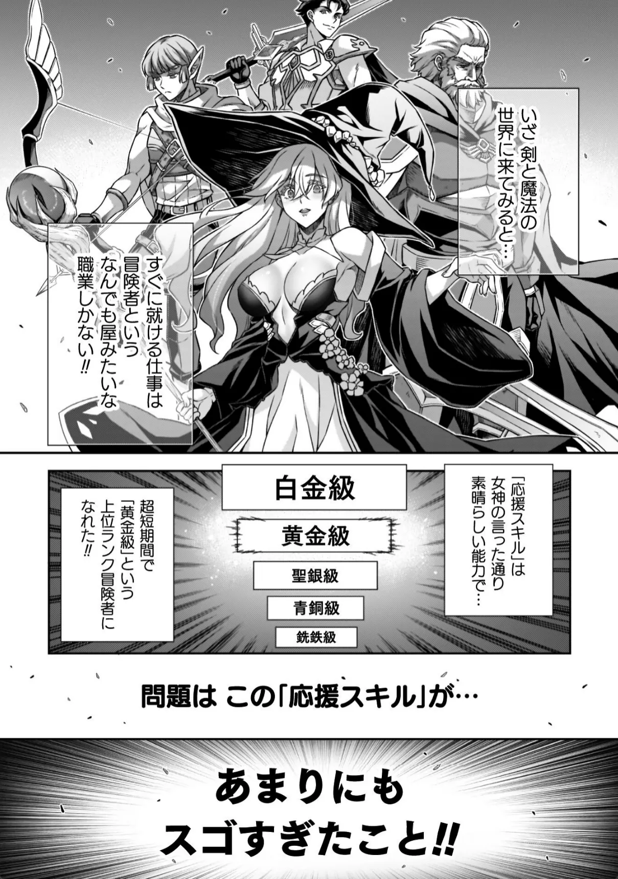 あらすじ:妻と娘から“ATM”のように扱われ、報われない人生を送っていた中年男性・文田大地。ある日、不慮の事故で命を落とした彼は、女神によって剣と魔法の異世界へ転生する。授かったのは、他人のために尽くしてきた者だけが得られる特別な力――仲間を強化する最強バフスキル《応援》。しかしその力はあまりに強力で、周囲から利用され、恐れられ、やがて大地は冒険者の道を離れることに。流れ着いた街でパブを開き、静かな新生活を送っていた大地。そこへ常連の若き女冒険者・メルティナが傷だらけで駆け込んでくる。「娼館に売られてしまう」と告げられた彼女を前に、かつて傷ついた心を抱える大地は再び立ち上がる決意をする。最強の“応援”が仲間を覚醒させる――お色気あり、バトルありの異世界逆転ファンタジー開幕!
